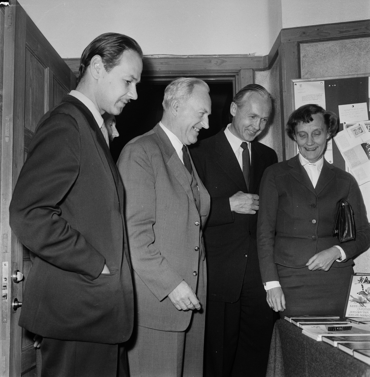 Barnboksdebatt Astrid Lindgren Och Lennart Hellsing Med Flera Vaksalaskolan Uppsala 1958 Upplandsmuseet Digitaltmuseum